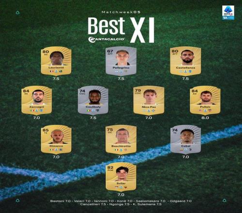 雷速体育9月30日宣 今天意甲官方公布了意甲联赛第5轮最佳阵容。