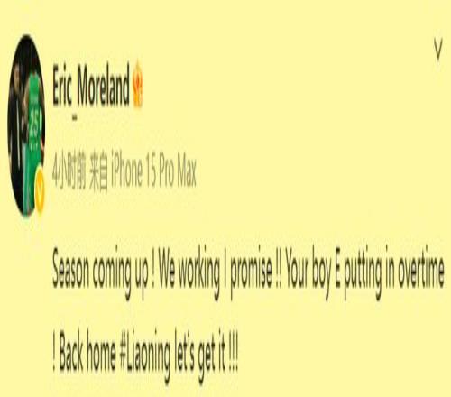 莫兰德上午9点自宣将启程回辽篮!承诺和兄弟们一道再冲冠,杨鸣更有信心了!