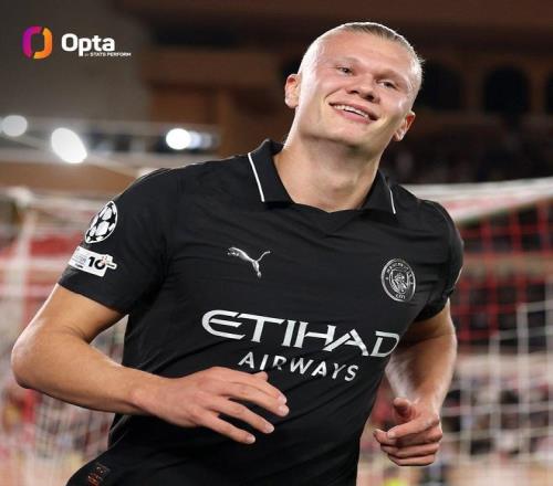 在与摩纳哥的欧冠联赛阶段第二轮比赛中打入两球后,曼城前锋哈兰德欧冠生涯50次出场已打入52球,超过了9支球队在欧冠联赛前50场比赛的进球数。