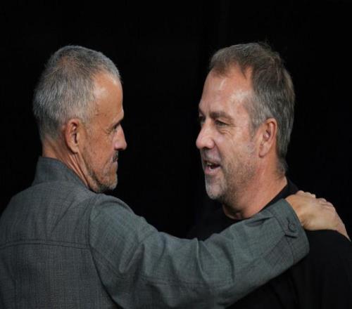 恩里克(左)和弗里克(右)在赛后交流,他们在这个赛季的斗法才刚开始。