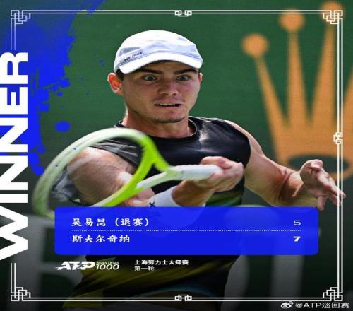 吴易昺首盘57斯夫尔奇纳后退赛,止步上海大师赛首轮