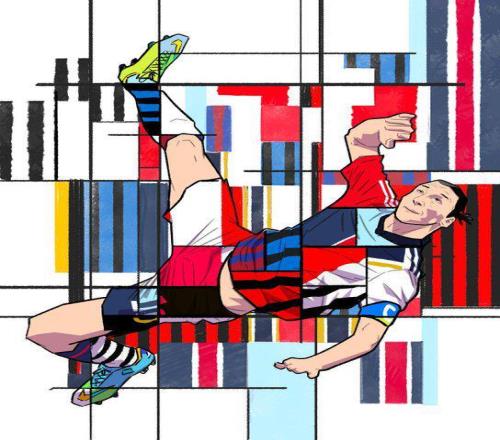 值得一提的是,法甲官方别出心裁地制作了一张精美配图。在这张配图中,伊布的球衣由9支他曾经效力过的俱乐部的元素组成。而图中的伊布正在空中舒展着身体,似乎在为倒钩做准备,这不禁让人联想到他曾经于瑞典国家队打进的那粒超远距离惊天倒挂金钩。
