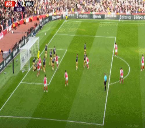 第32分钟,萨卡右路传中,阿森纳禁区围攻连续打门被挡