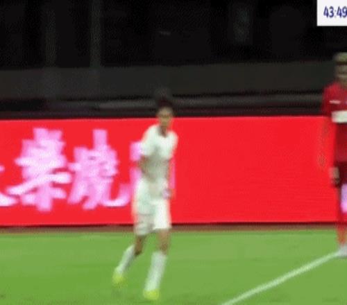 第43分钟,茹子楠左路内切之后右脚劲射,韩镕泽扑救不及,皮球直入死角,梅州客家取得领先。