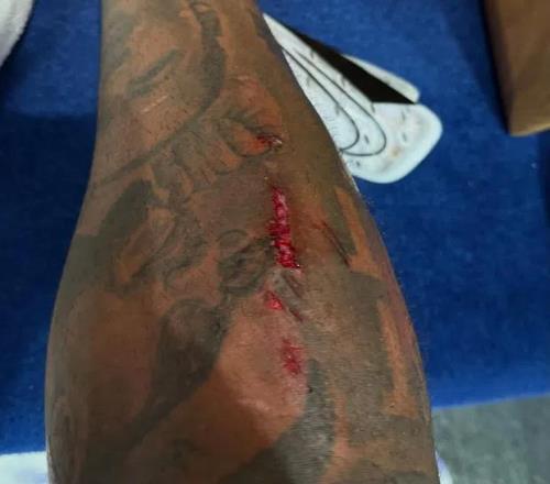 切尔西队长里斯-詹姆斯在社交媒体上展示了在刚刚对阵利物浦一役后他右腿的状况,图中看出他的小腿被鞋钉刮出了一道血口子。