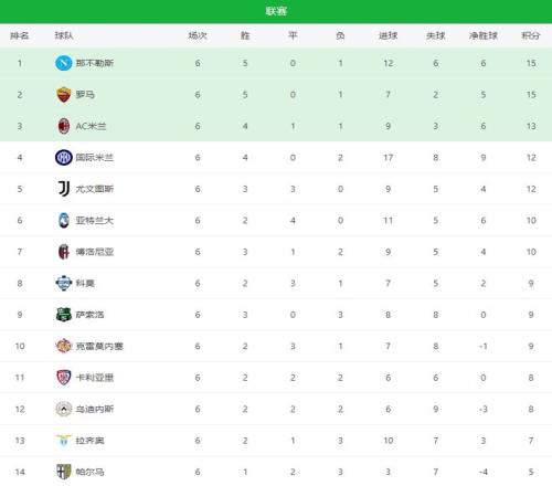 目前意甲积分榜如下: