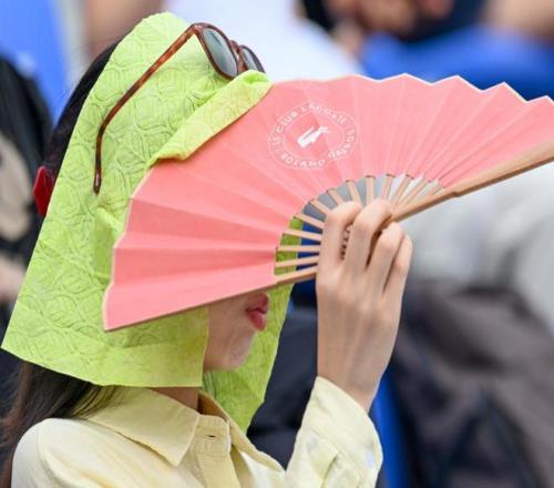 2025年10月7日,上海,久事体育场馆旗忠网球中心,天气炎热,观众用纸巾和扇子遮阳。澎湃新闻记者 朱伟辉 图