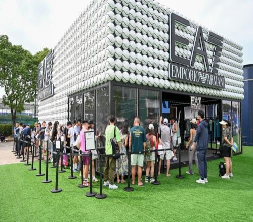 2025年10月7日,上海,久事体育场馆旗忠网球中心,官方纪念品商店人气爆棚。澎湃新闻记者 朱伟辉 图