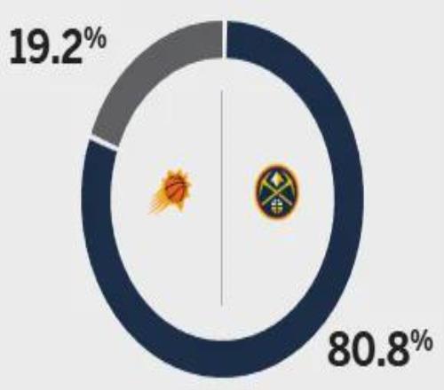 ESPN预测明日掘金vs太阳:掘金胜率超八成,太阳胜率仅19.2%