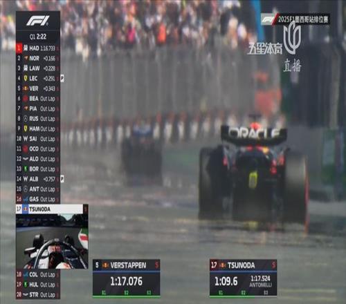 哈斯的比尔曼曾以1:17.106短暂来到过Q1的第一名,不过诺里斯在个人第二个飞行圈直接以1:16.899来到第一。法拉利车队的勒克莱尔以0.125秒的差距来到第二。Q1末端,小红牛发力,哈贾尔在第二和第三计时段连续刷紫,以1:16.733来到第一!劳森慢队友0.228秒,但依旧刷掉勒克莱尔来到第三。