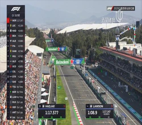 Q1起表后,两辆阿斯顿·马丁率先出场,随后麦克拉伦的诺里斯率先跑出1:17.147的成绩来到第一。而外界最为关注的还是维斯塔潘,但他的赛车在墨西哥似乎并未调整到最好的状态,第一个飞行圈,维斯塔潘的赛车在连续的高速弯中出现打滑,未能做出理想的成绩。