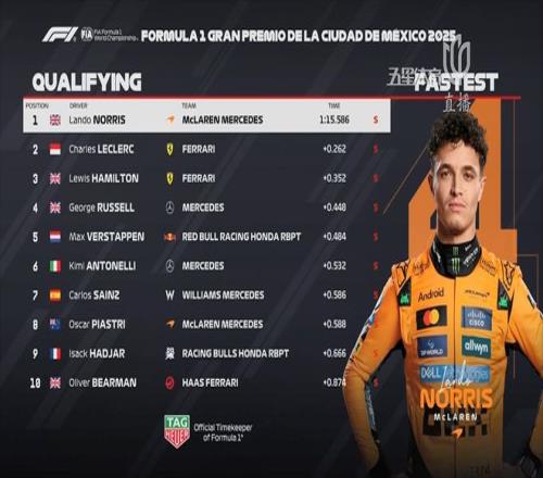 北京时间10月26日凌晨,2025赛季F1迎来了美洲站背靠背的第二站——墨西哥站的排位赛。最终,诺里斯“大杀四方”获得杆位!法拉利异军突起,勒克莱尔和汉密尔顿分获二、三!这也是汉密尔顿本赛季最好的排位赛成绩。而诺里斯的队友皮亚斯特里仅排在第八名。