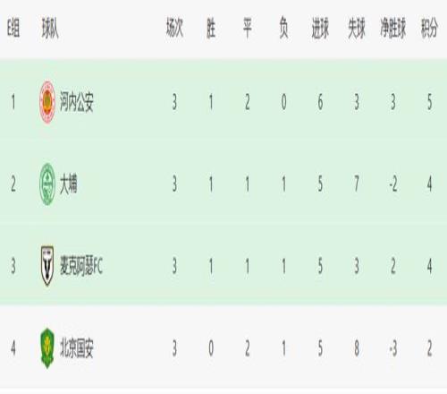对手大埔虽然是一支名不见经传的中国香港球队,但却在前面3轮表现不俗,取得1胜1平1负积4分的战绩,目前排在该小组的第2名。双方首回合比赛,北京国安在客场3:3战平大埔,本轮如果国安能够在主场拿下大埔,就可反超他们摆脱积分垫底的尴尬。