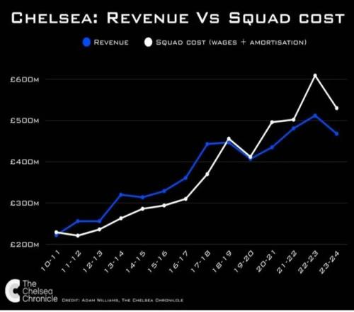 切尔西收入与阵容成本对比折线图