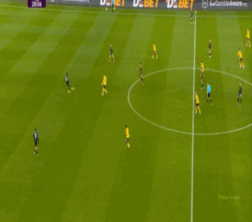 正当曼联即将带着1-0的比分进入中场休息的更衣室的时候,曼联几乎在最后一次防守中出现了问题,面对狼队的连续传中,阿玛德-迪亚洛出现了防守上的松懈: