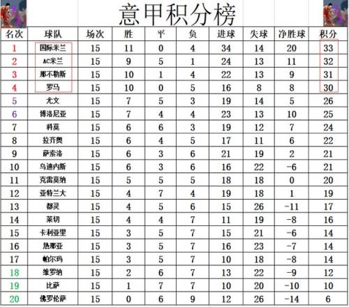 积分榜方面,罗马小胜黑马赢球后,加入争冠行列,还是落后国米3分,现在从国米,AC米兰,那不勒斯到罗马,四队依次1分只差从第1排到第4。第5的尤文落后的稍微多一些,尤文差国米7分,少罗马4分。