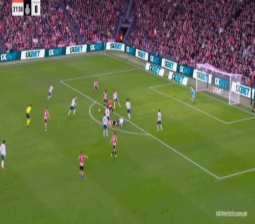 第38分钟,贝伦格尔门前捅射破门,毕尔巴鄂竞技1-0西班牙人