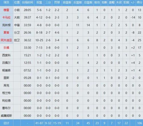 开拓者四人得分上双,阿夫迪亚25分6板8助2断,夏普22分3板2助2断,乐福17分3板3帽。