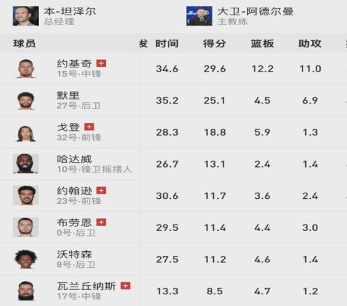 昨天掘金客场106-103险胜猛龙。猛龙前锋英格拉姆最后时刻命中绝平三分,可惜超时了,猛龙3分惜败。瓦兰丘纳斯顶替约基奇首发,此役瓦兰出战23分钟,6投5中,罚球8中7,得到17分9篮板4助攻1抢断3盖帽。