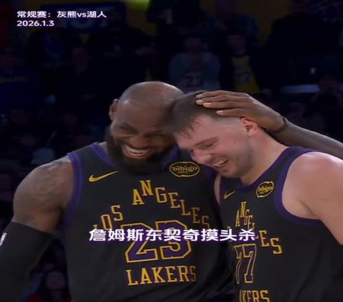 1月3日消息,1月3日结束的NBA常规赛中,湖人主场128-121击败灰熊。本场比赛,詹姆斯发挥出色砍下31分9篮板6助攻,比赛最后时刻,詹姆斯和东契奇在场上来了一出“摸头杀”,老詹一脸慈祥,77则是享受其间。