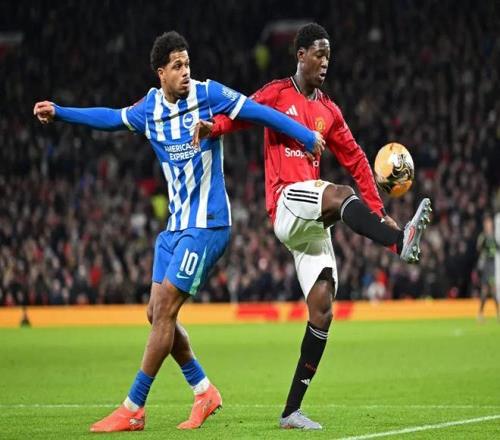 在阿莫林下课之后,达伦·弗莱彻成为曼联的临时主帅。在上一轮英超比赛中, 曼城2-2战平保级球队伯恩利。此番足总杯比赛面对布莱顿,达伦·弗莱彻对首发阵容做出了小幅度轮换,卢克肖轮休,卡塞米罗、海文替补,梅努,约罗和达洛特进入首发阵容。然而,曼联在主场依旧是“雷声大雨点小”,他们全场狂轰19脚却只进1球:谢什科终场前头球扳回一分,但为时已晚。