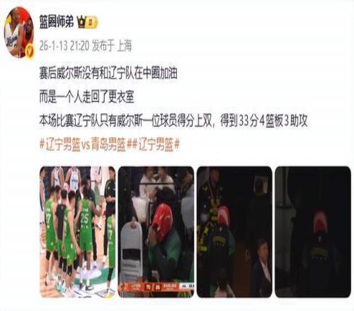 比赛结束后,威尔斯未参与球队中圈集体鼓劲环节,直接返回更衣室,这一行为在CBA文化中极为罕见。球员赛后围圈互勉是团队凝聚力的象征,其缺席被外界广泛解读为对球队现状的失望与不满。在连续两场“一人扛队、全队沉寂”的局面下,威尔斯的沉默离场,加剧了外界对辽宁队内部矛盾的猜测。