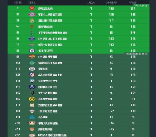 欧冠最新积分榜!阿森纳拜仁提前出线,4队已出局,第613名同分